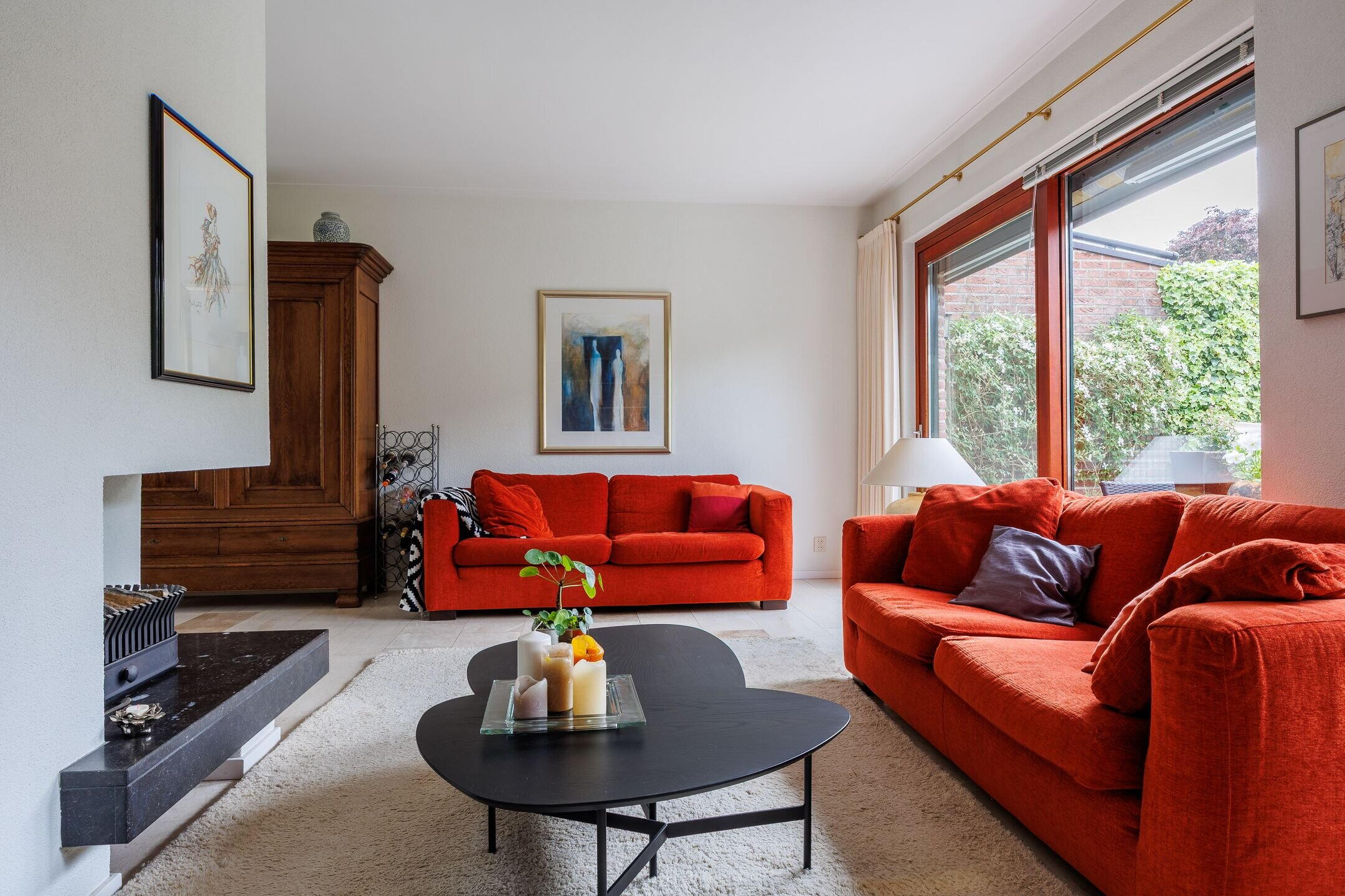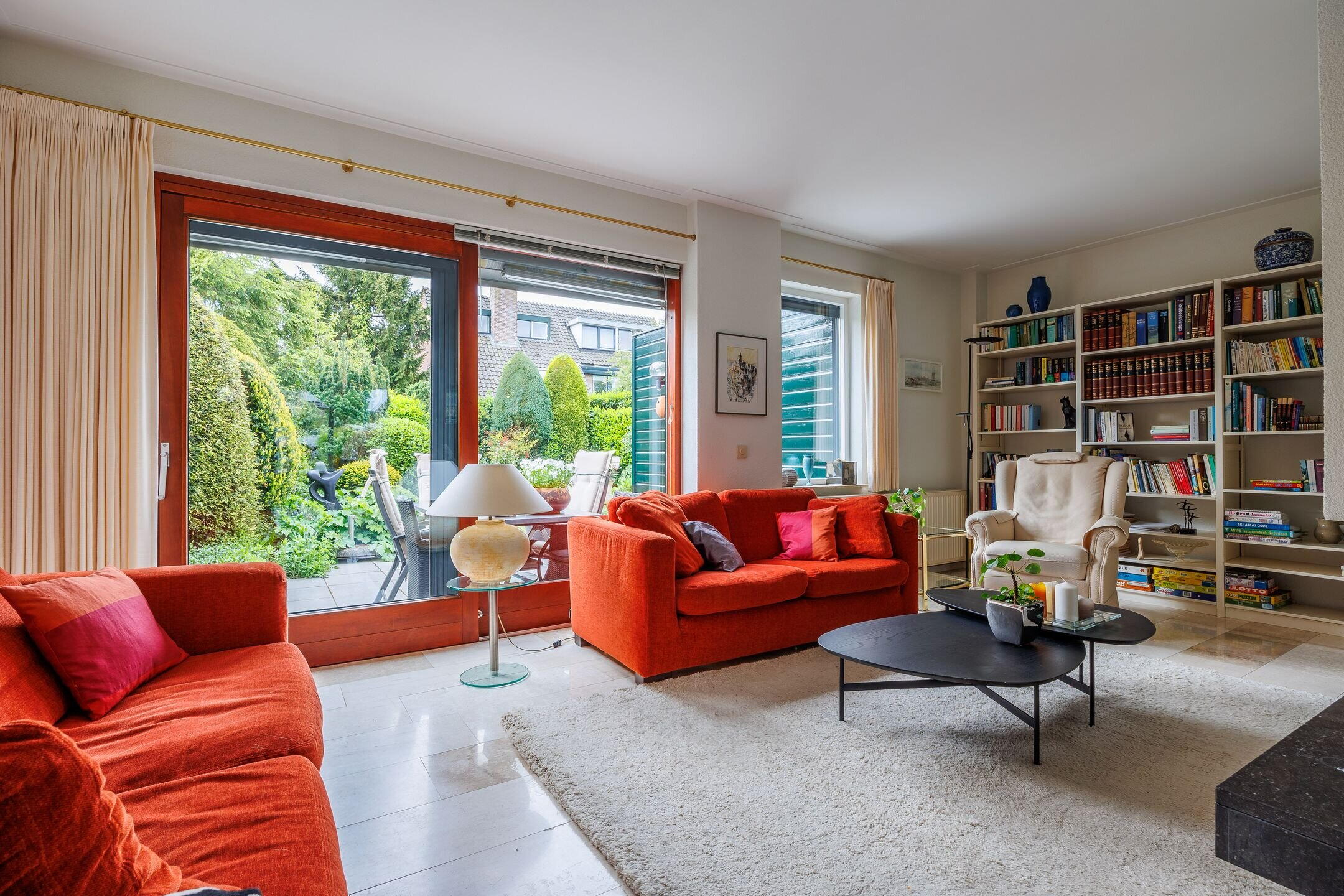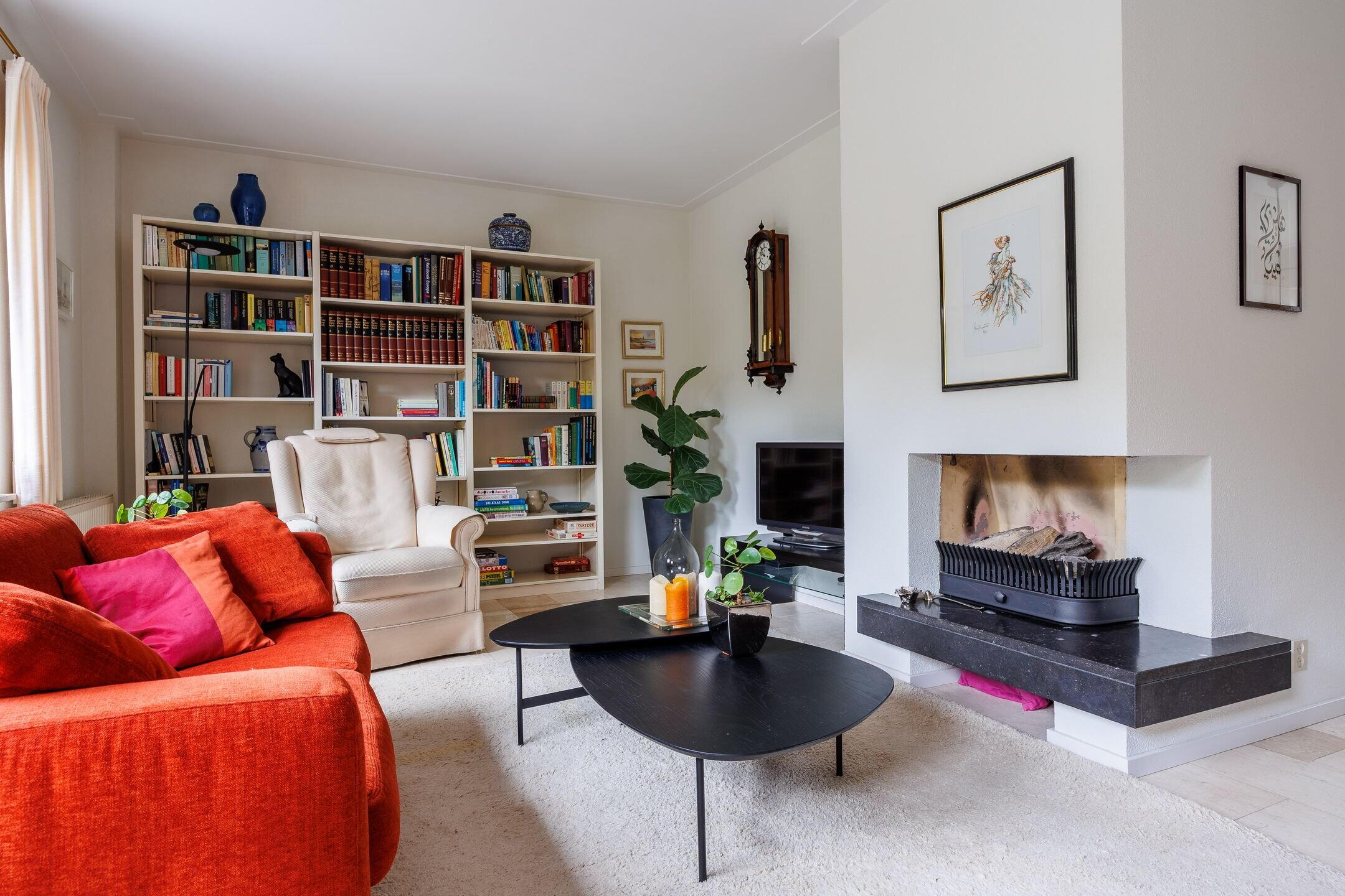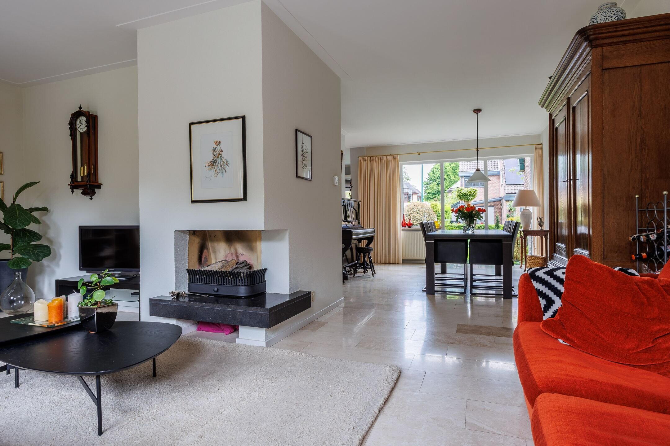 Begane grond: ENTREE met ruime hal, voorzien van een trapopgang, toiletruimte en een meterkast. Vanuit de hal kom je in de royale en lichte living met open keuken, samen ruim 53 m². De zithoek aan de achterzijde van het huis beschikt over een gezellige open haard en een brede schuifpui die toegang biedt tot de achtertuin. Aan de voorzijde van de woning bevindt zich de ruime eethoek, grenzend aan een grote raampartij. De living loopt over in een ruime halfopen keuken. Deze keuken biedt volop werkruimte en is uitgerust met diverse inbouwapparatuur en voldoende kastruimte. Zowel aan voor- als achterzijde heerlijke lichtinval en mooi zicht op de tuinen. De volledige begane grond is voorzien van stenen vloer met vloerverwarming.