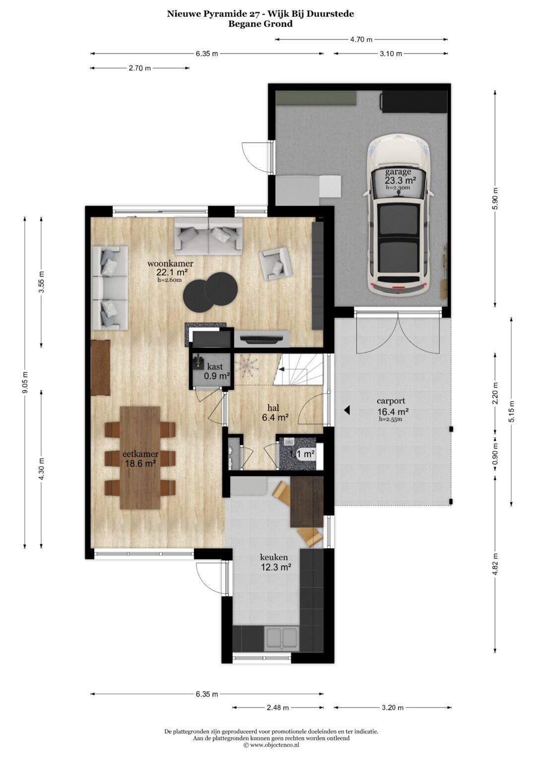 - 72 m² (9,24 meter diep en 9,66 meter breed)